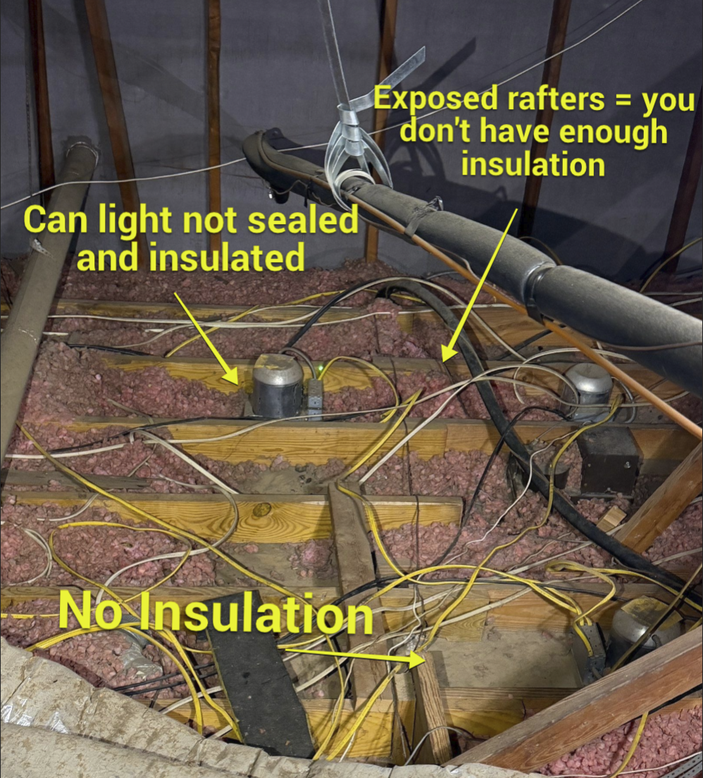• Attics with no air sealing